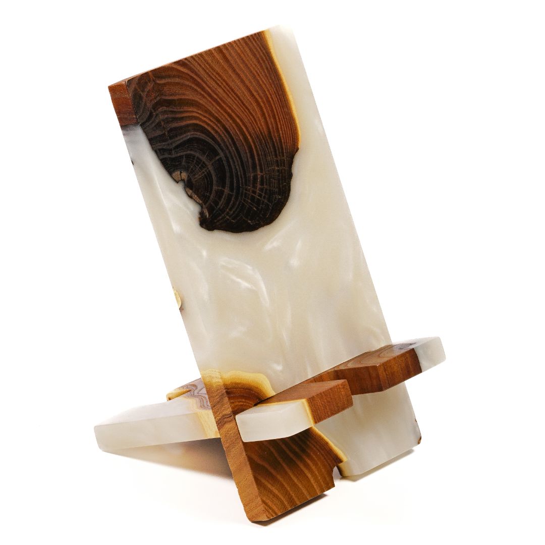 About Platinum Epoxy Resin & Dark Wood Phone Holder